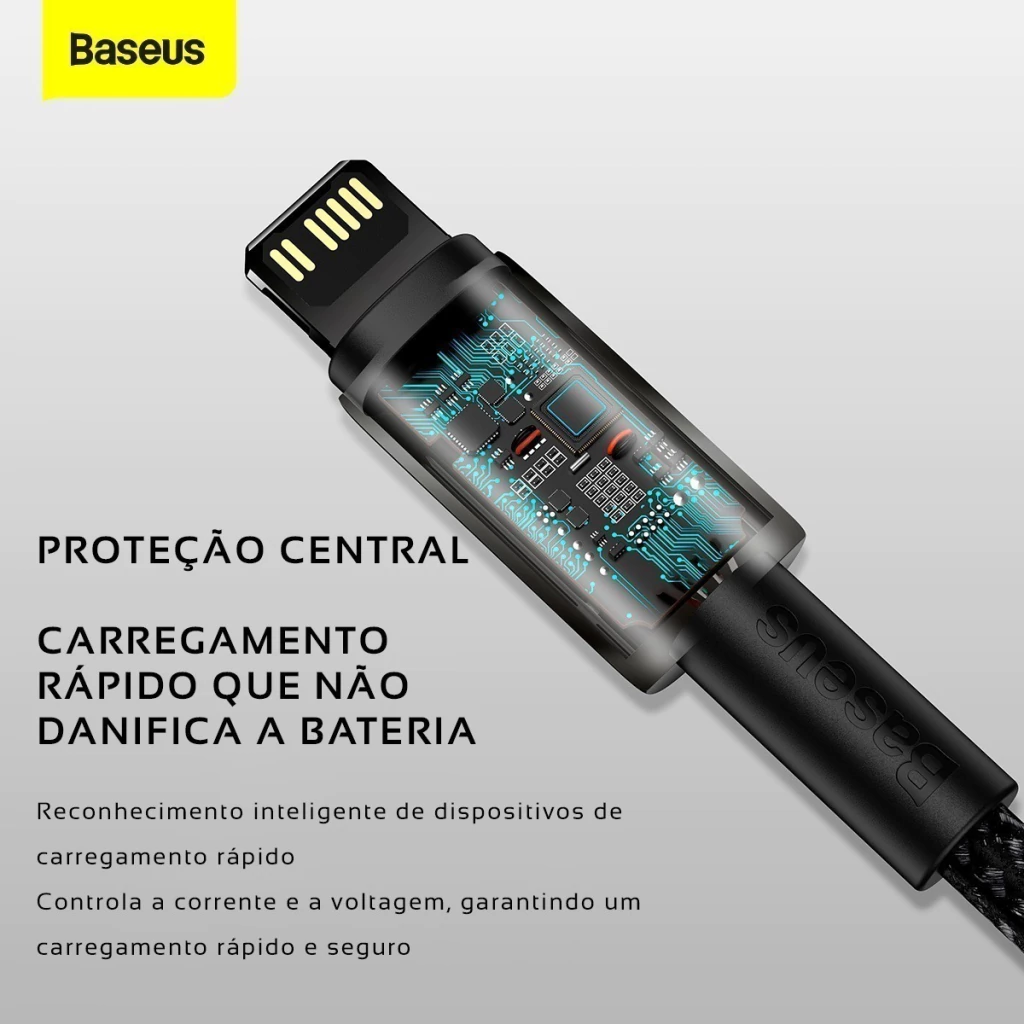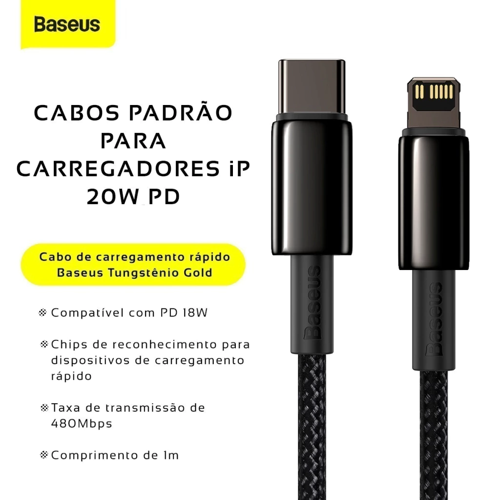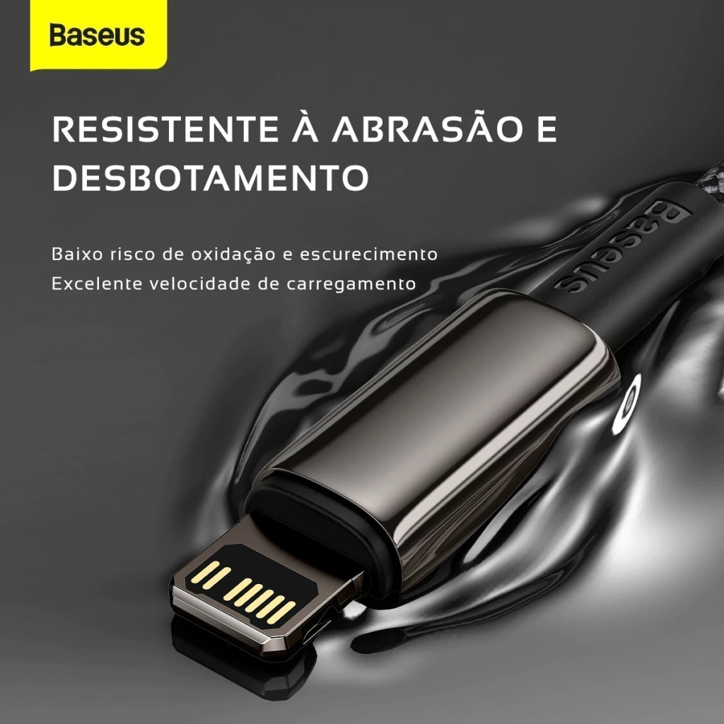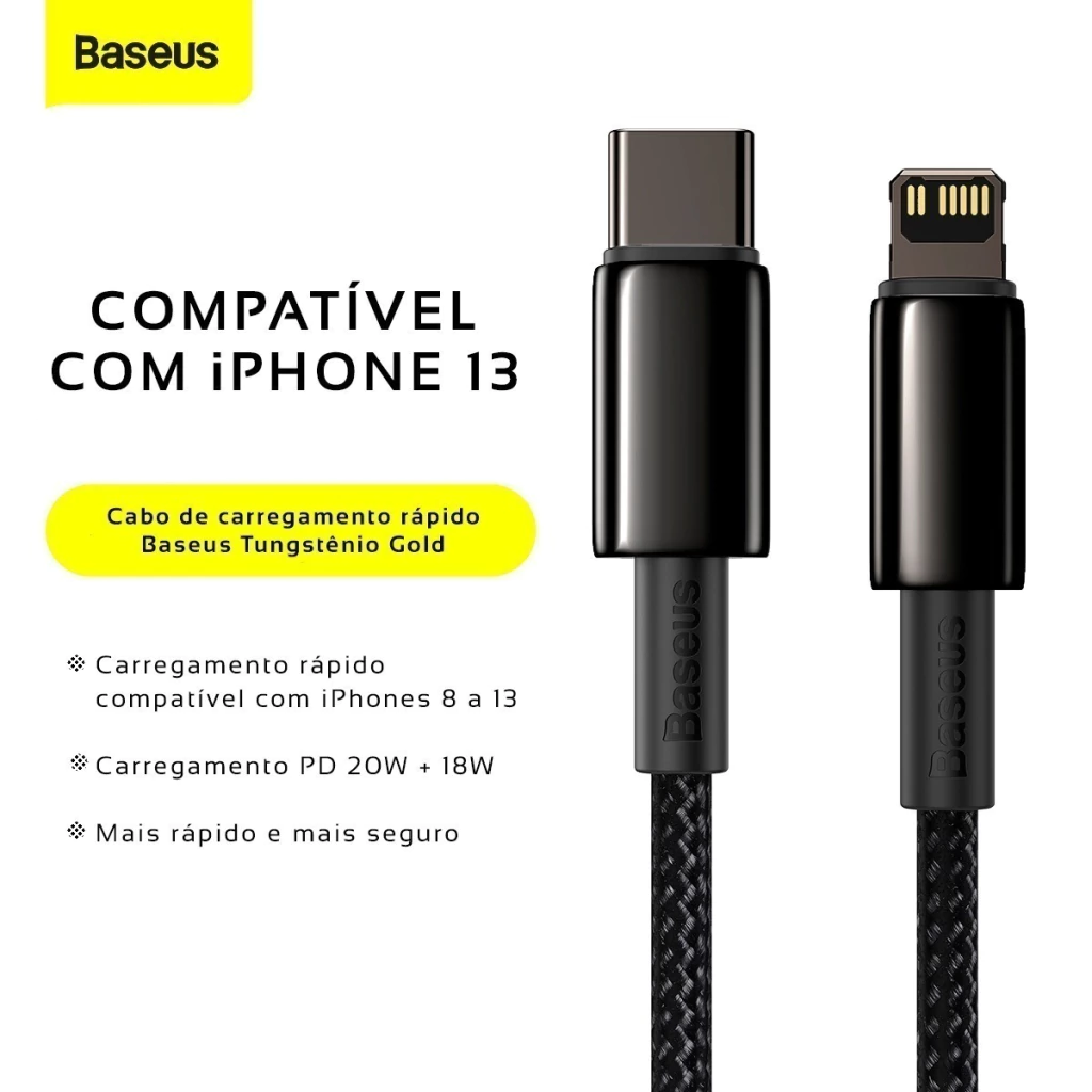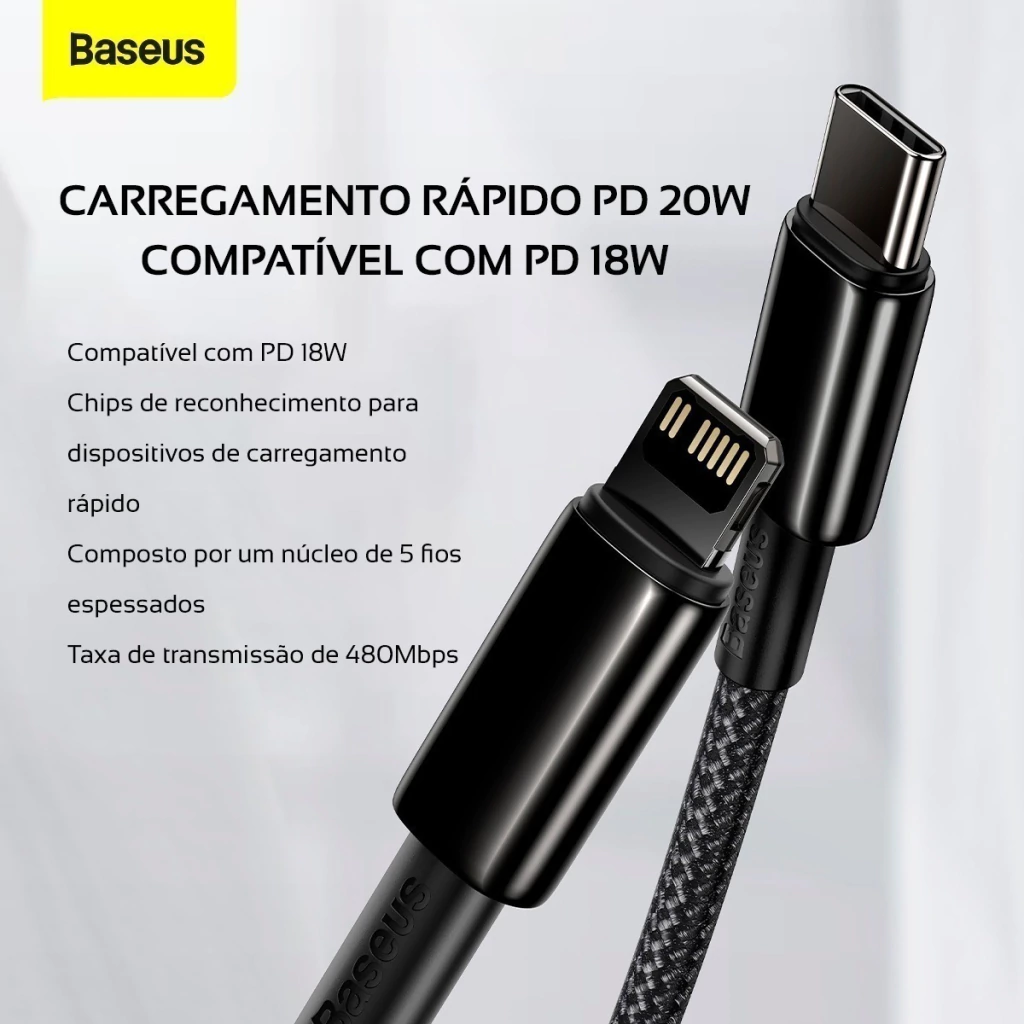 Cabo ideal para recarregar e transferir dados em iPhones com entrada Lightning, com suporte a carregamento rápido Power Delivery.