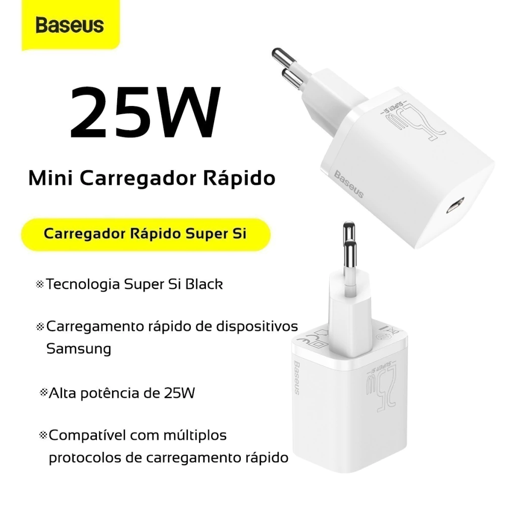 Carregue seu dispositivo até 3x mais rápido com tecnologia Power Delivery de 25W. Compacto, portátil e ideal para quem precisa de praticidade e potência no dia a dia. O carregador se adapta automaticamente ao seu dispositivo, oferecendo proteção contra superaquecimento, sobrecarga e curto-circuito. Acompanha cabo de 1 metro com padrão USB-C para USB-C. Compatível com smartphones, tablets, power banks, ventoinhas portáteis e mais.