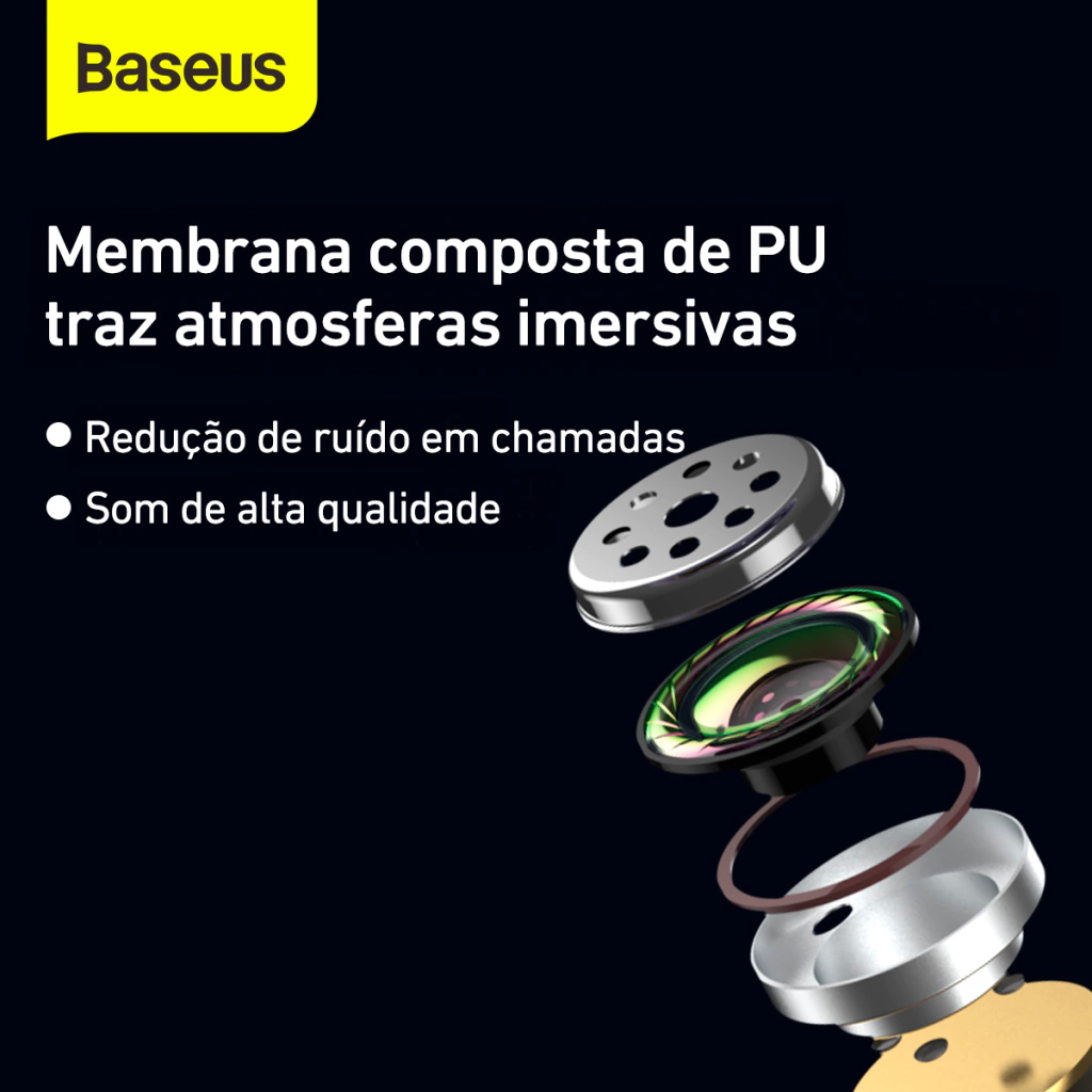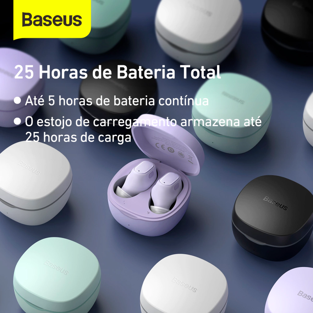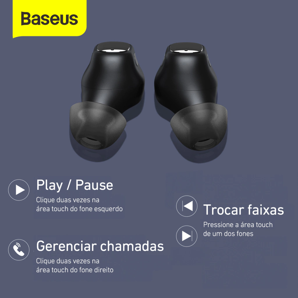 Fone Bluetooth Baseus WM01 com design intra-auricular, até 25h de bateria, controles por toque e som de alta qualidade. Compacto e confortável para o dia a dia.