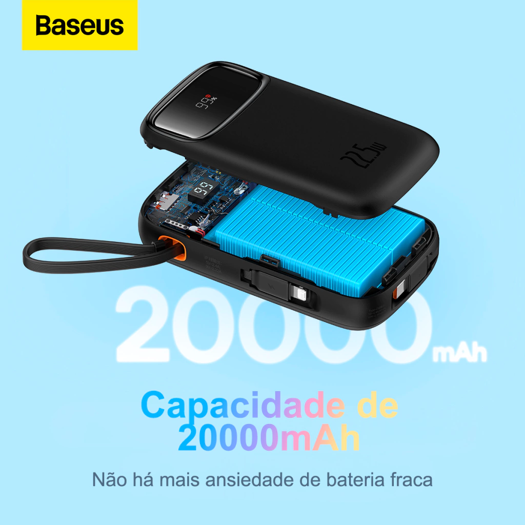 Bateria de 20000mAh com carregamento rápido até 22.5W